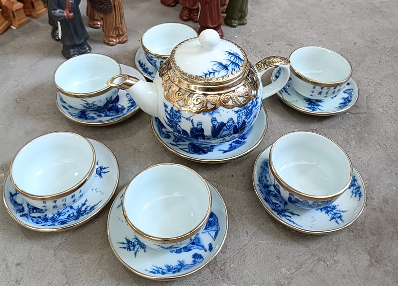 BỘ BÌNH TRÀ HÔNG XANH BỌC ĐỒNG