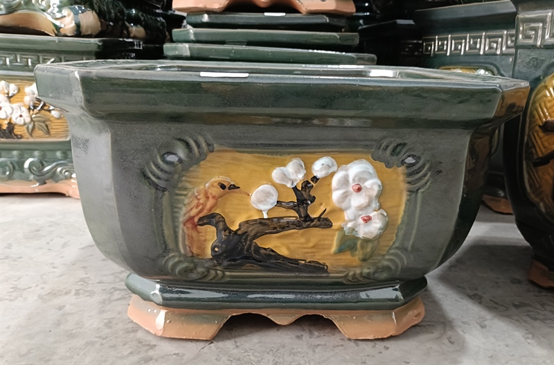 - Chậu men được sản xuất từ chất liệu gốm sứ đầy màu sắc, chịu được sự khắc nghiệt của thời tiết, mang lại nét quý phái xa hoa, tô điểm cho không gian nội thất, ngoại thất.