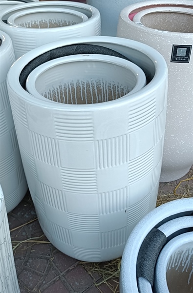 CHẬU BOM TRÒN ĐÍT TRẮNG XANH S2