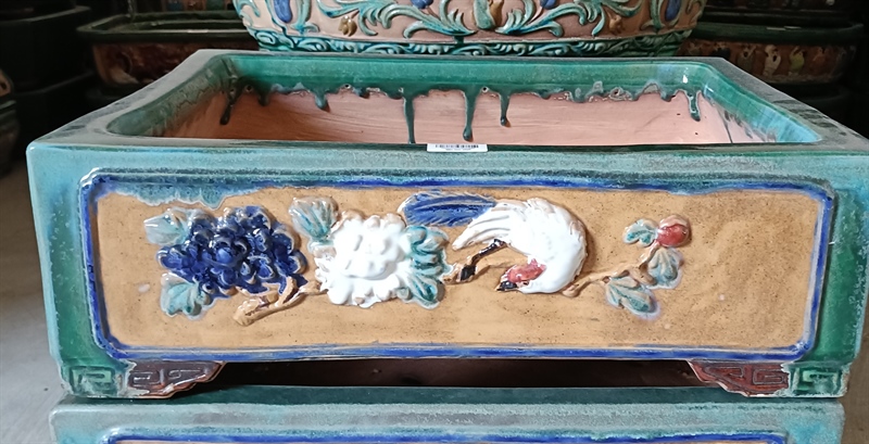 - Chậu được sản xuất từ cơ sở sản xuất Gốm Hoàng - một cơ sở sản xuất gốm sứ nổi tiếng ở Đồng Nai chuyên làm hàng gốm đắp nổi thủ công.