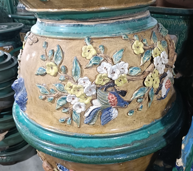 CHẬU TRÒN CHIM BÔNG ĐẮP NỔI 60