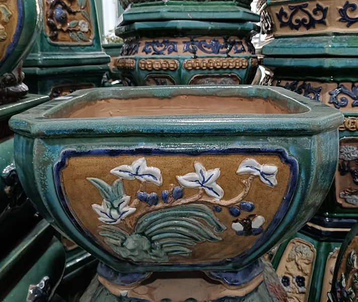 - Chậu được sản xuất từ cơ sở sản xuất Gốm Hoàng - một cơ sở sản xuất gốm sứ nổi tiếng ở Đồng Nai chuyên làm hàng gốm đắp nổi thủ công.